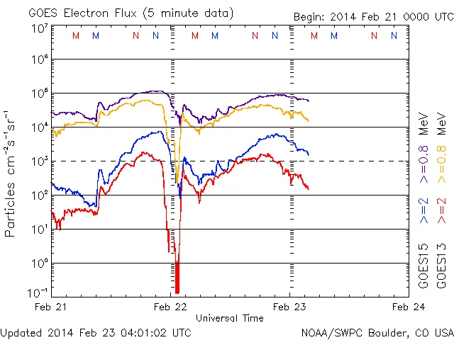 02/22 01時(UT)過ぎにかなり強い反応がありました。その後も所々小さな反応が出ています。