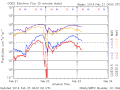 携帯の方で本BLOGからのリンクではチャートが見づらい場合はリーマンさんの記事内にある「注意報まとめ」のリンクをたどるとポリポリさんが作成されたページに飛べます。このページ内に【ETS8静止軌道磁場】がありますので、こちらをクリックするとポリポリさんが作成された「携帯でも見られるグラフ」をご覧いただけると思います。(ポリポリさん、いつもお疲れ様でございます。ぺこり)