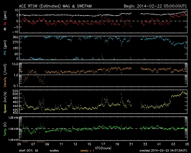 速度にバラつきがあり、420~450km/s前後で推移していましたが、お昼前から一段速度が上がり、現在500km/s前後と高速な状態です。