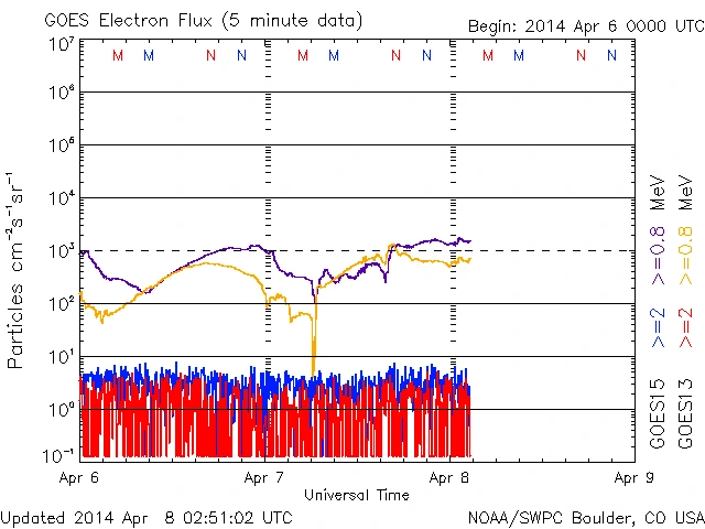 >=0.8MeVのラインは、04/07 06時(UT)、15時(UT)くらいに反応が出ています。06時(UT)の反応は強いです。ご注意ください。