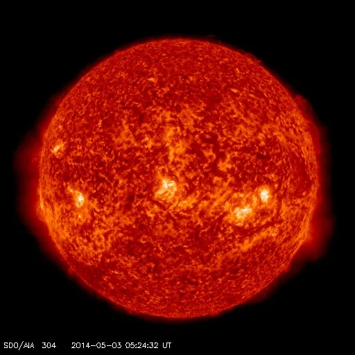 北半球と南半球の東端(まだ向こう側)に活動領域があるようです。