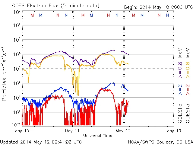 >=0.8MeVのラインは05/10 03時(UT)、18時(UT)と、05/11 04時(UT)くらいにかけて激しい反応が出ました。その後も所々反応が出ています。
