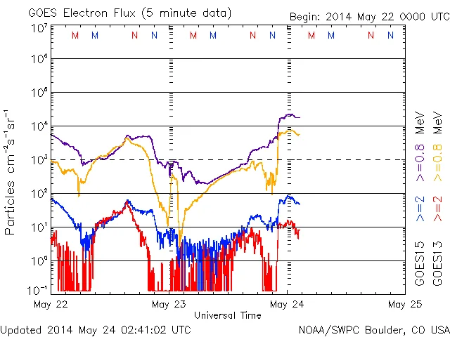 >=2.0MeVのラインは05/23 20時(UT)以降、激しい反応が出ています。