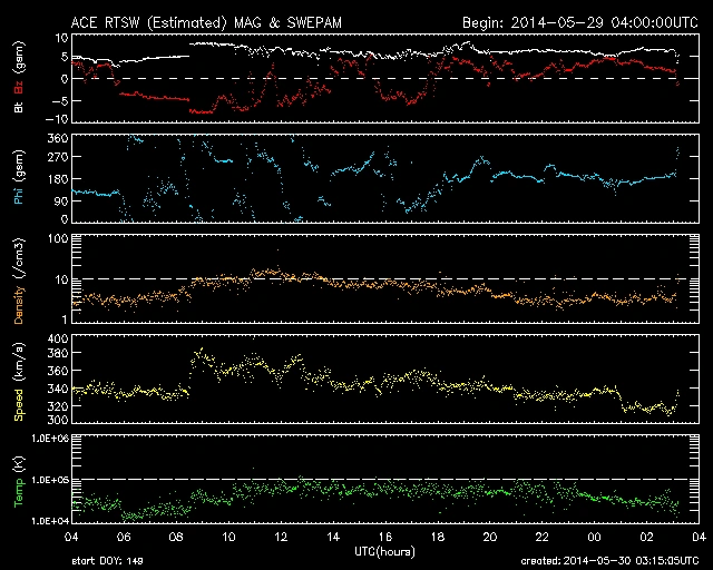 05/29 09時(UT)頃から15時(UT)くらいにかけてやや乱れが出ました。