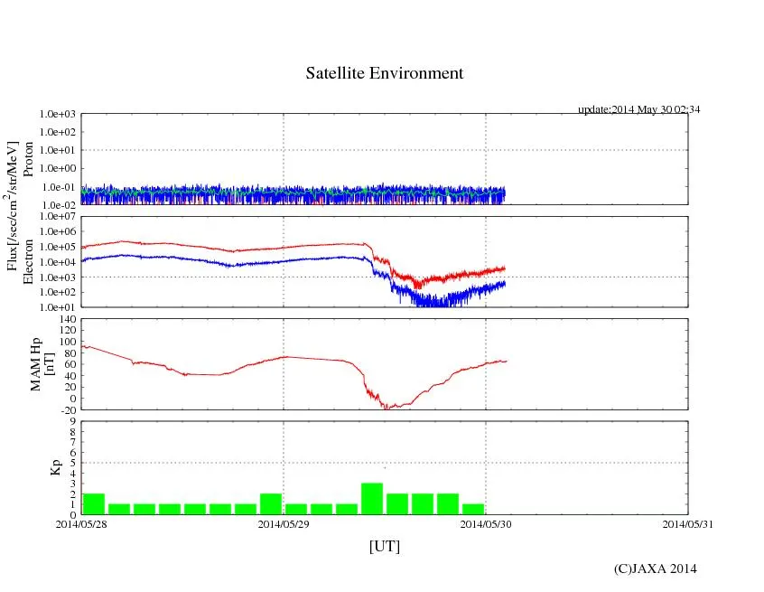 05/29 10時(UT)頃から激しい反応が出て、>=2MeVラインは激しい乱れが続いています。念のためご注意ください。