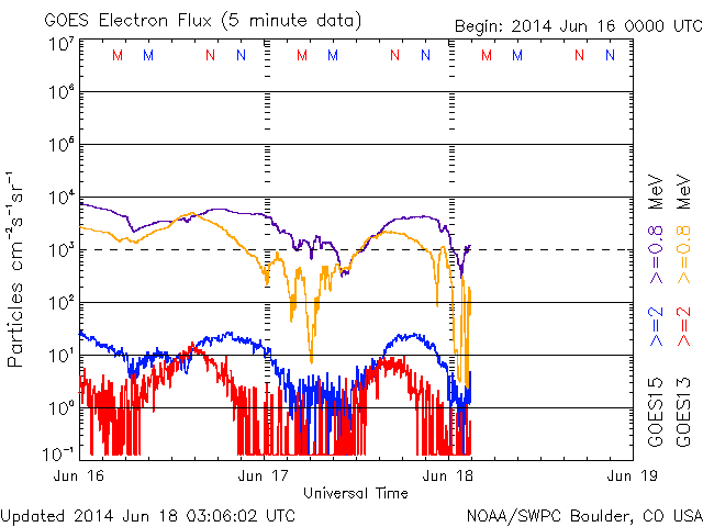 GOES13の>=2MeVのラインは06/16 20時~06/17 14時(UT)にかけてと、20時(UT)以降、乱れがあります。ご注意ください。