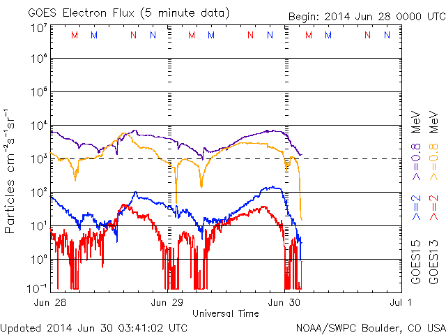 6/29 02時(UT)、05時、UTで06/30に日付が変わった頃に反応がありました。現在(04時(UT))出ている反応は強めです。