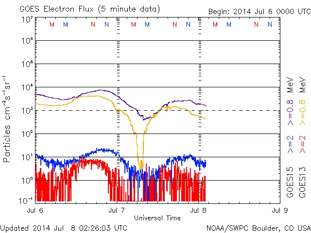 >=0.8MeVのラインに反応が出ました。07/07 08時(UT)前後にやや強めの反応が出ています。ご注意ください。