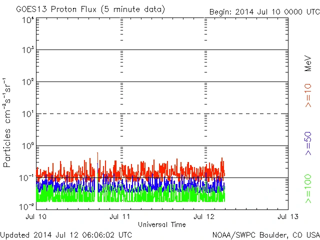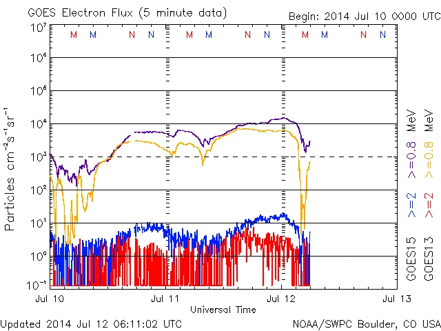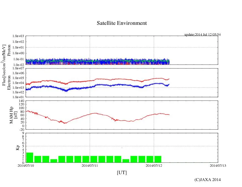 >=0.8MeVのラインに07/11 07時(UT)に小さめな反応がありました。その後、07/12 04時(UT) くらいに強めの反応があります。この後乱れが続くようなら要注意。