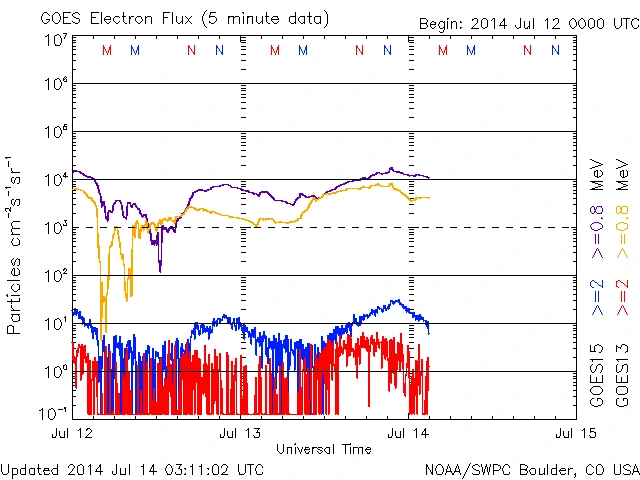 太陽フレアと黒点数(2014年07月14日更新) ※CME影響下
