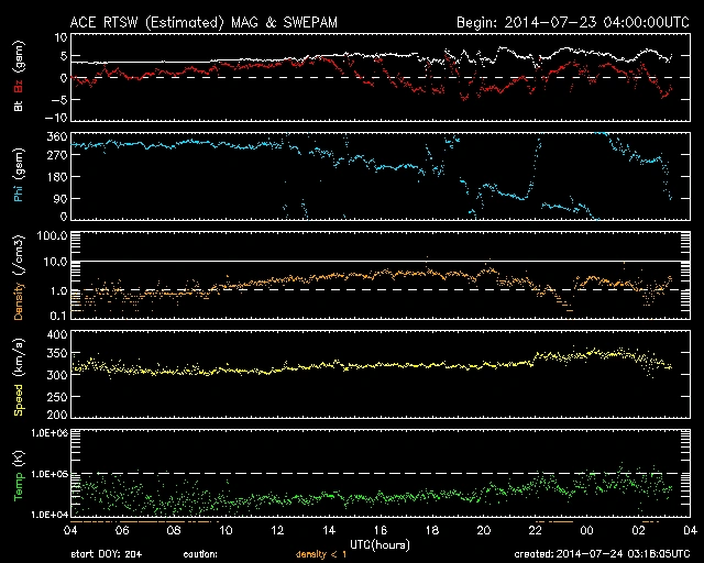 携帯の方で本BLOGからのリンクではチャートが見づらい場合はリーマンさんの記事内にある「注意報まとめ」のリンクをたどるとポリポリさんが作成されたページに飛べます。このページ内に【ETS8静止軌道磁場】がありますので、こちらをクリックするとポリポリさんが作成された「携帯でも見られるグラフ」をご覧いただけると思います。(ポリポリさん、いつもお疲れ様でございます。ぺこり)