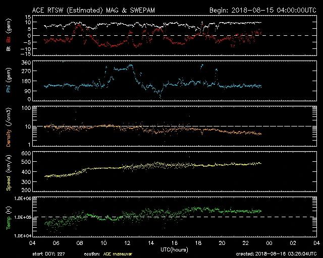 昨日夕方くらいから速度が上がり、現在480km/s前後で推移しています。