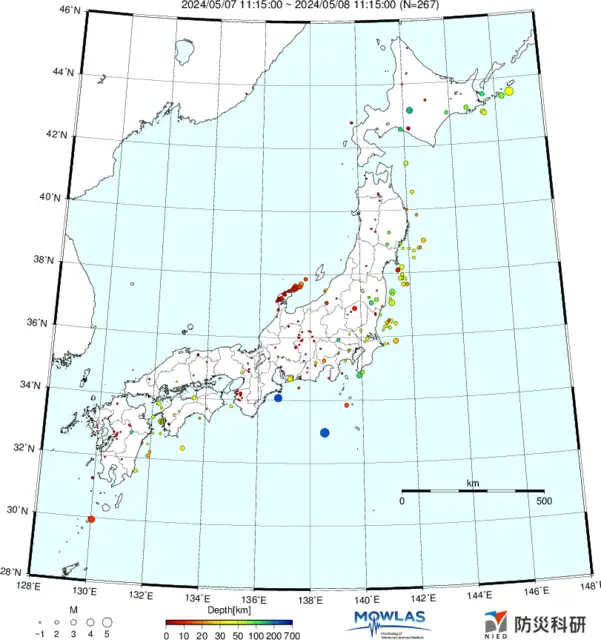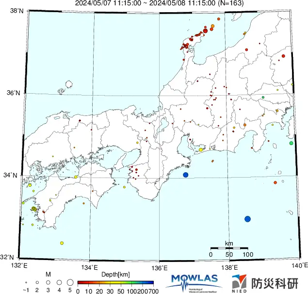 ●Hi-net日本地震分布と気象庁・・・hi-netの小笠原のデータは掲載日がずれて反映されるようです(翌々日に掲載)。掲載されないものもあるようなので気象庁の画像も付けます