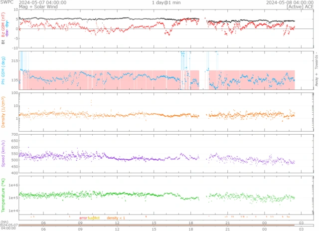 一時550km/s前後まで上がりましたが、現在480km/s前後で推移しています