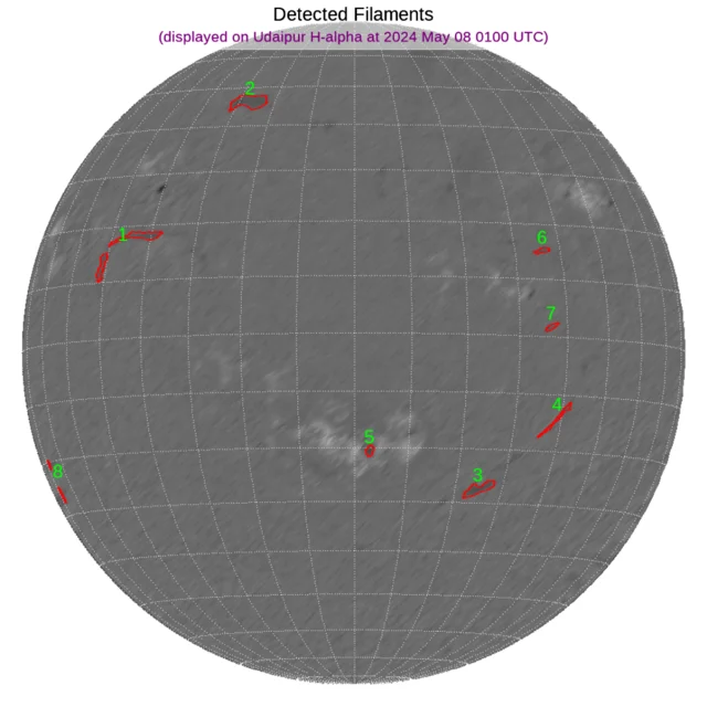 南半球中心~西側、北半球西側・東側にフィラメントがあります