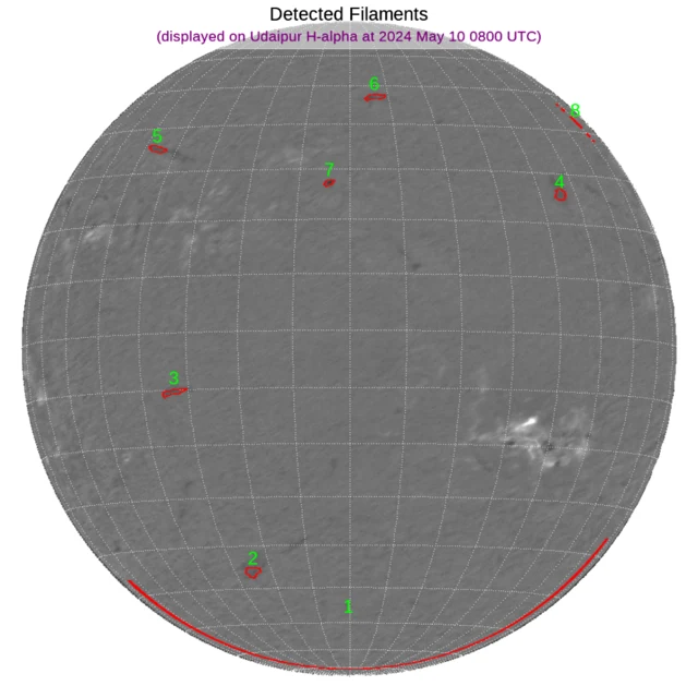 北半球と南半球東側にフィラメントが散在しています