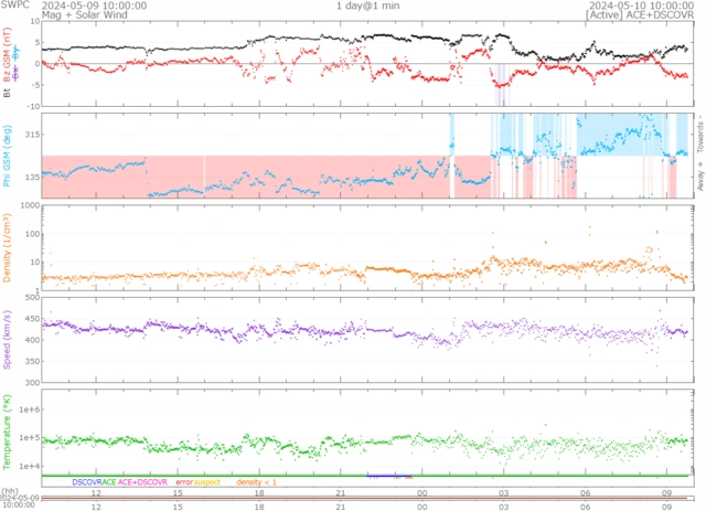 速度は少し下がり、現在420km/s前後で推移しています