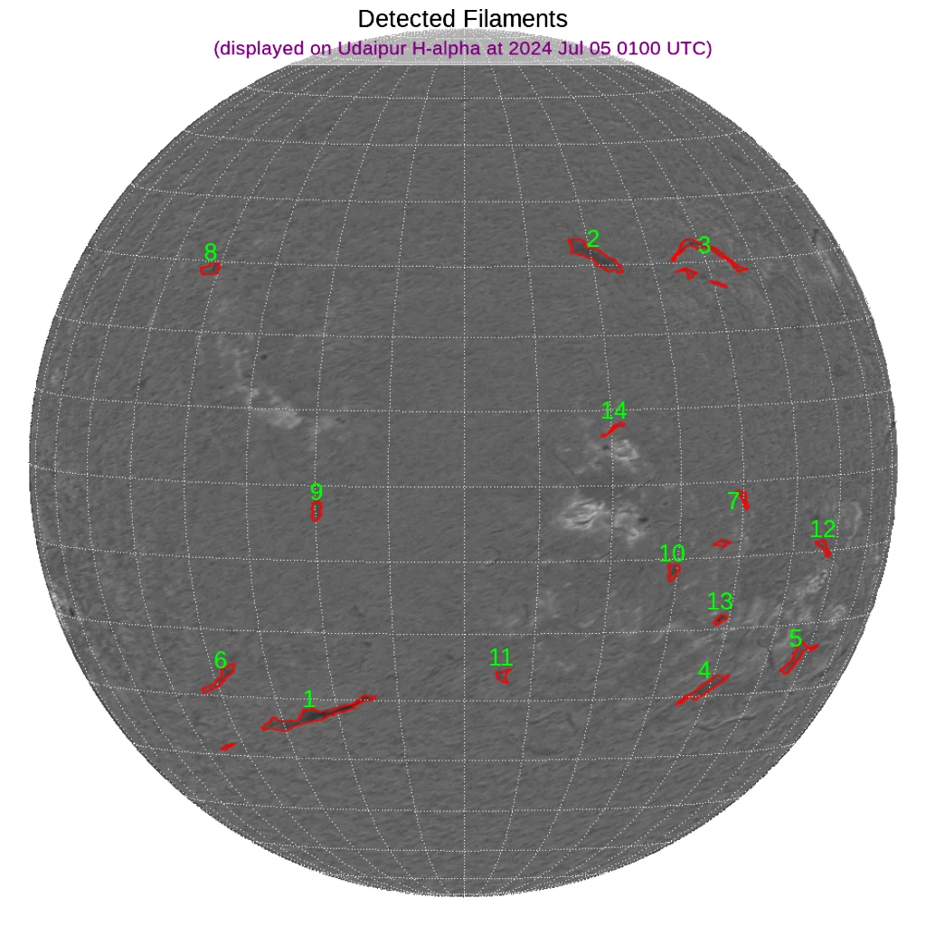 南半球西側を中心に、南半球東側、北半球西側にもフィラメントがあります