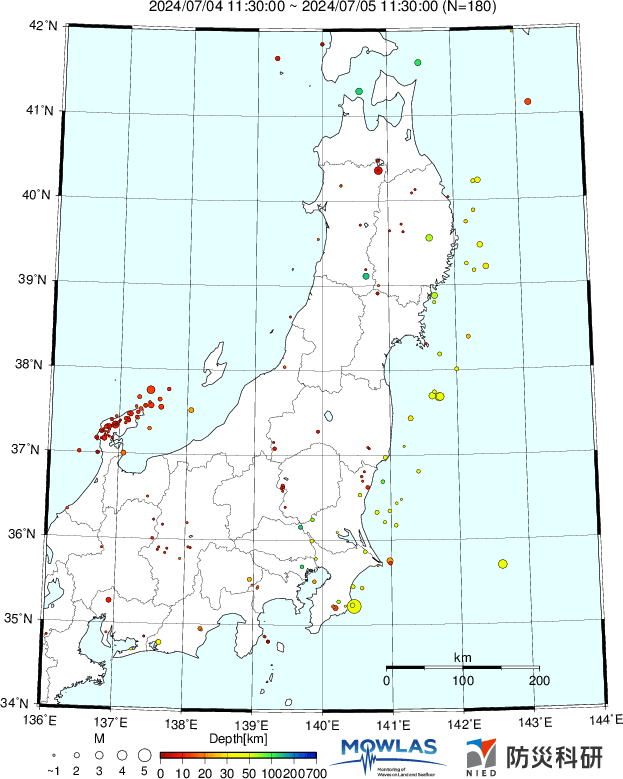 ●Hi-net日本地震分布と気象庁・・・hi-netの小笠原のデータは掲載日がずれて反映されるようです(翌々日に掲載)。掲載されないものもあるようなので気象庁の画像も付けます