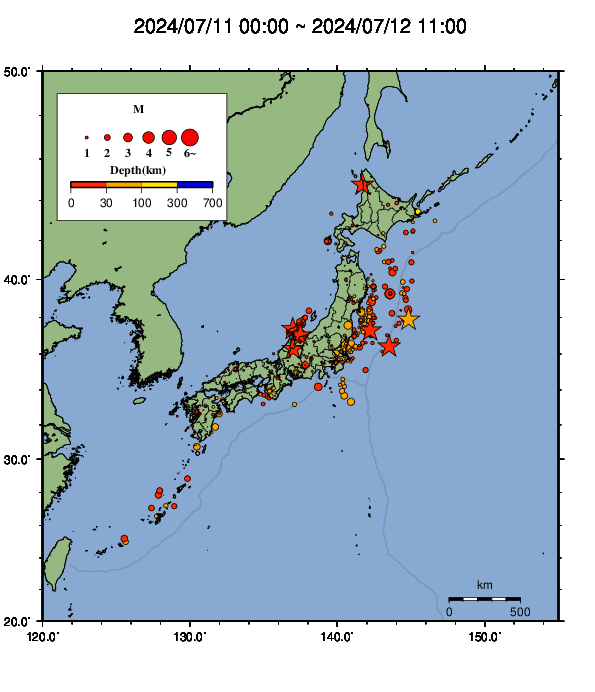 ●Hi-net日本地震分布と気象庁・・・hi-netの小笠原のデータは掲載日がずれて反映されるようです(翌々日に掲載)。掲載されないものもあるようなので気象庁の画像も付けます