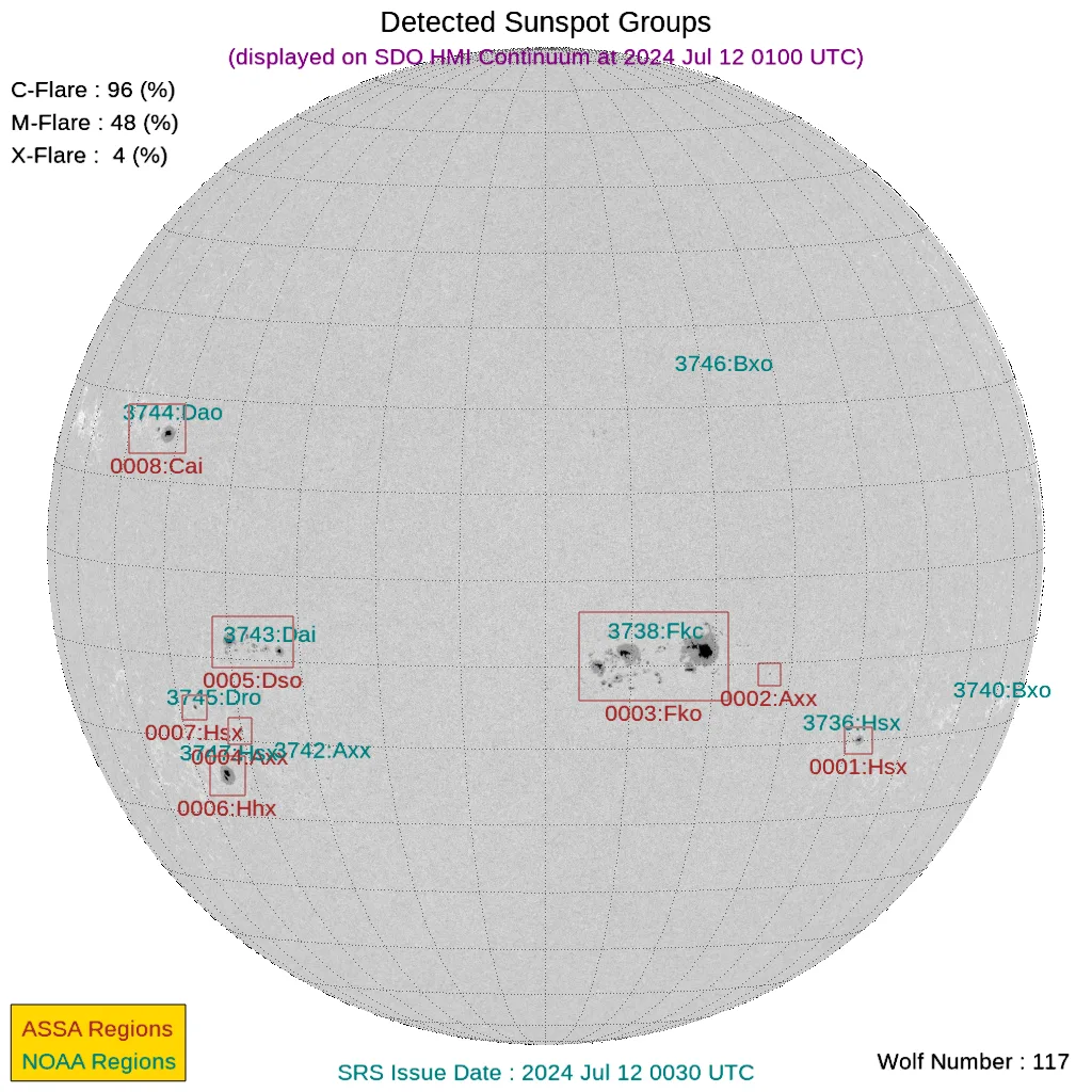 現時点で地球正面の黒点群は[3738, 3746]です。←黒点番号が振られていない活動領域でもフレアは発生しますので、あくまで目安として捉えてください。