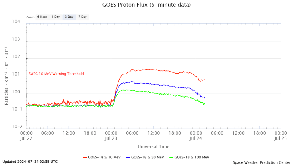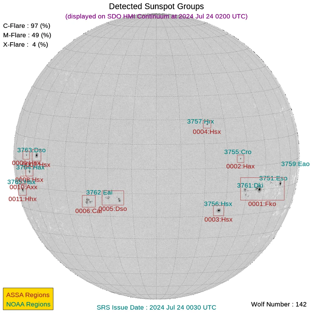 太陽フレアと黒点数(2024年07月24日更新)※中規模太陽フレア&CME到着予測あり