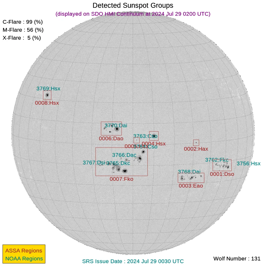 太陽フレアと黒点数(2024年07月29日更新)※大規模太陽フレア&中規模頻発&CME到着予測あり