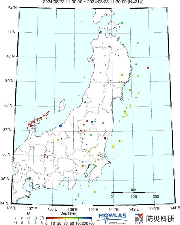 ●Hi-net日本地震分布と気象庁・・・hi-netの小笠原のデータは掲載日がずれて反映されるようです(翌々日に掲載)。掲載されないものもあるようなので気象庁の画像も付けます