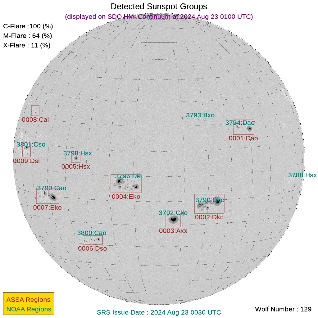 太陽フレアと黒点数(2024年08月23日更新)※中規模太陽フレア