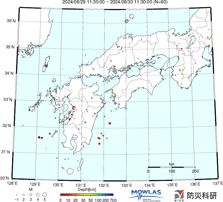 ●Hi-net日本地震分布と気象庁・・・hi-netの小笠原のデータは掲載日がずれて反映されるようです(翌々日に掲載)。掲載されないものもあるようなので気象庁の画像も付けます