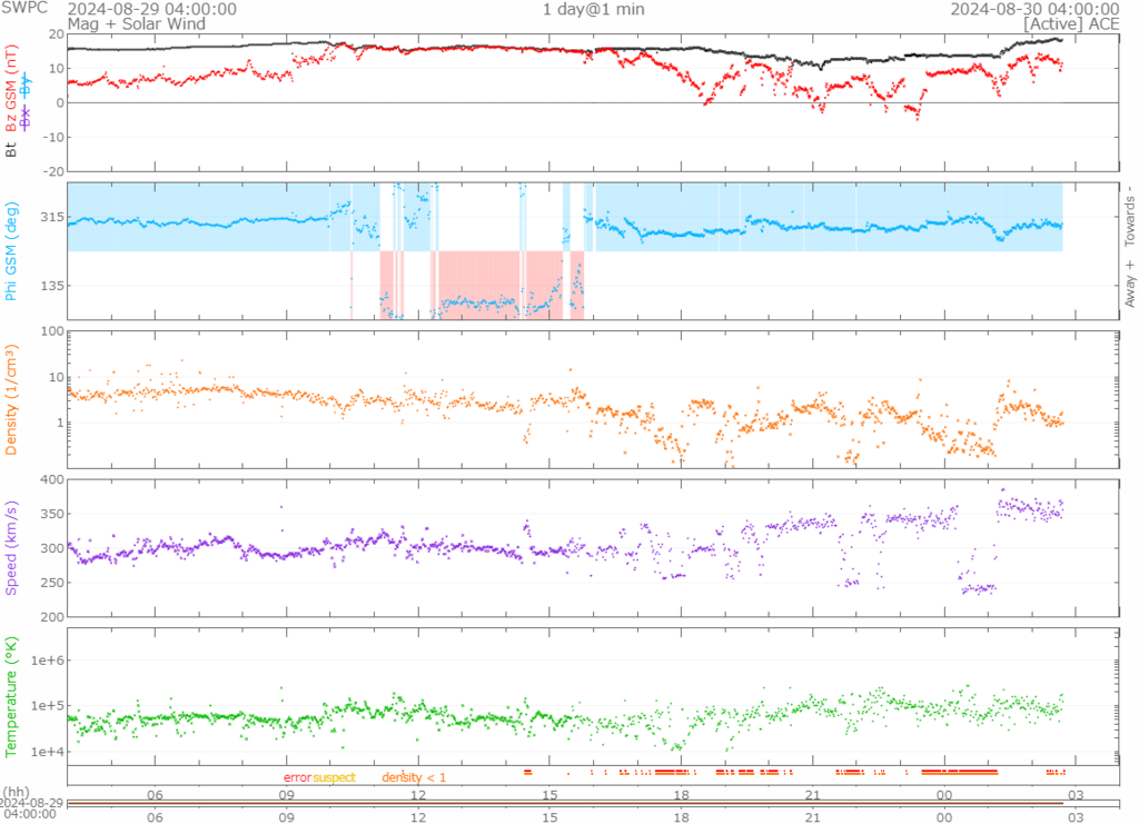 300km/s前後で推移していましたが時々減速しながら徐々に上がり、現在360km/s前後で推移しています