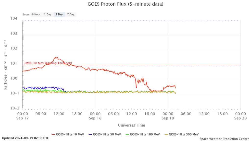 太陽フレアと黒点数(2024年09月19日更新)※磁気嵐は18日13時頃収束