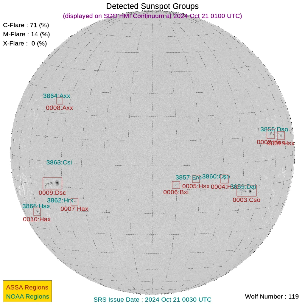 現時点で地球正面の黒点群は[3857]です。←黒点番号が振られていない活動領域でもフレアは発生しますので、あくまで目安として捉えてください。