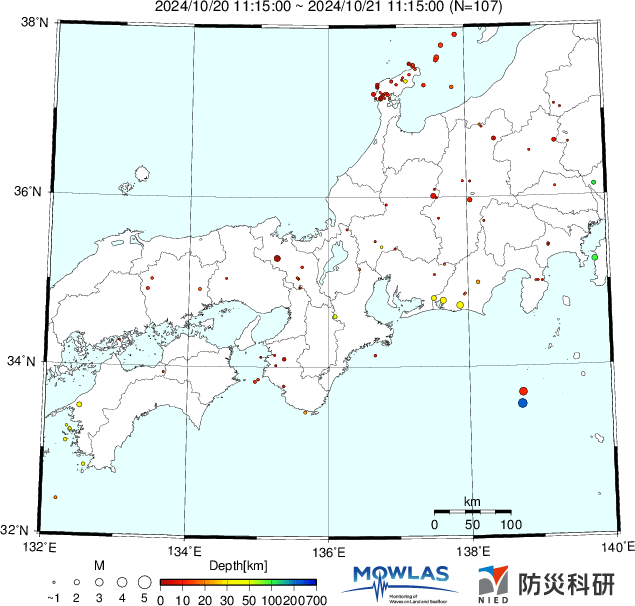 ●Hi-net日本地震分布と気象庁・・・hi-netの小笠原のデータは掲載日がずれて反映されるようです(翌々日に掲載)。掲載されないものもあるようなので気象庁の画像も付けます