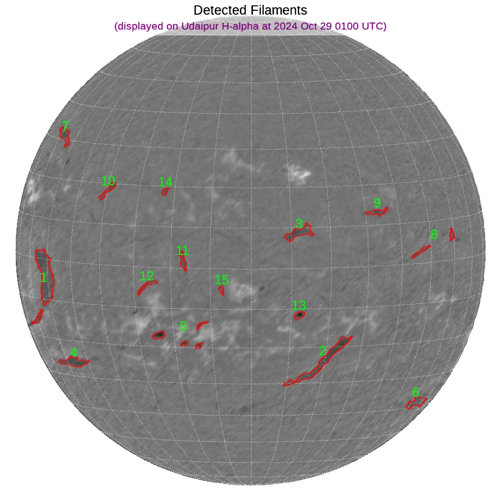 北半球の中緯度帯~南半球の中緯度帯にフィラメントが散在しています。