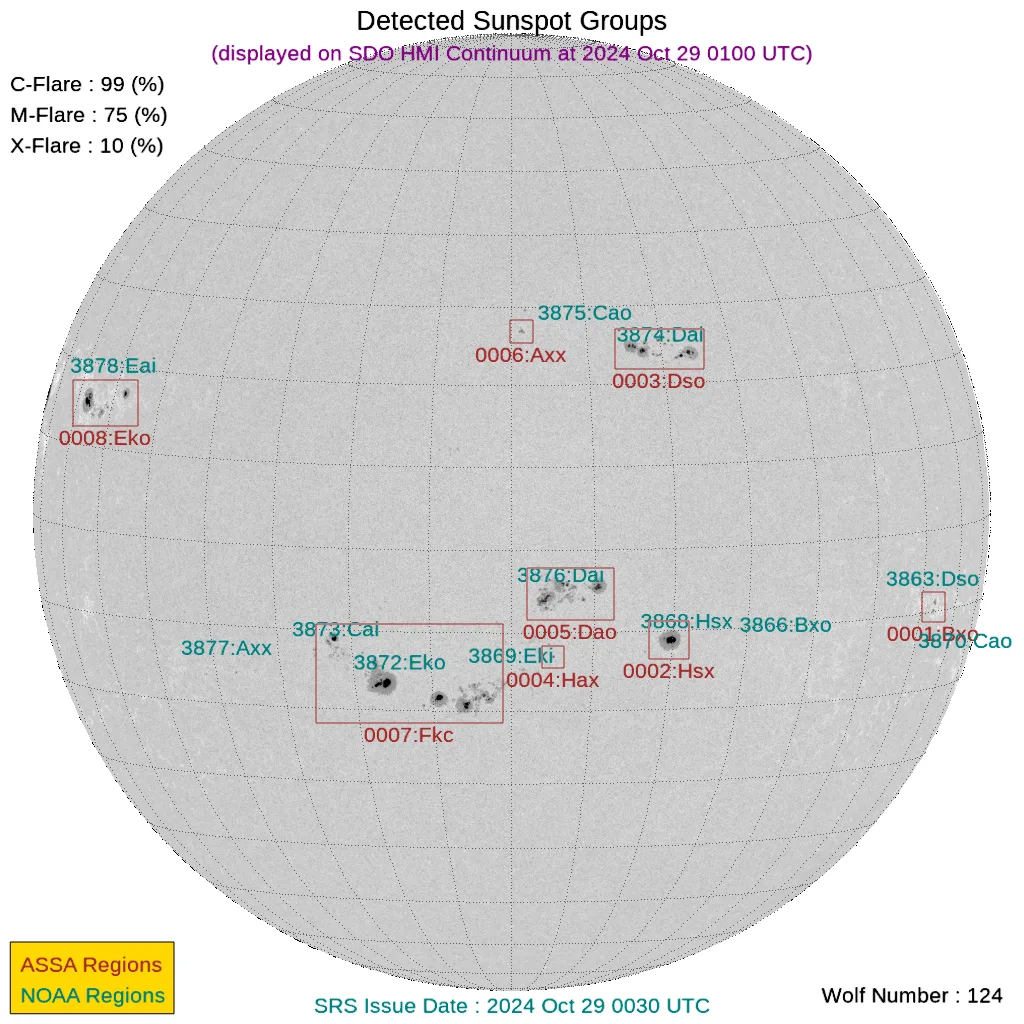 現時点で地球正面の黒点群は[3868, 3872, 3873, 3874, 3875, 3876]です。←黒点番号が振られていない活動領域でもフレアは発生しますので、あくまで目安として捉えてください。