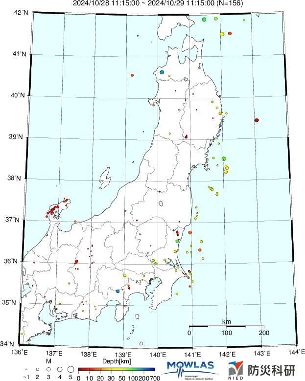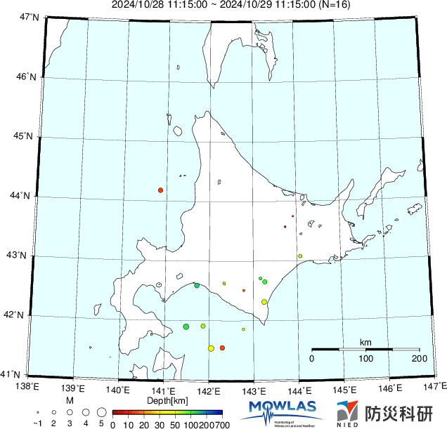 ●Hi-net日本地震分布と気象庁・・・hi-netの小笠原のデータは掲載日がずれて反映されるようです(翌々日に掲載)。掲載されないものもあるようなので気象庁の画像も付けます