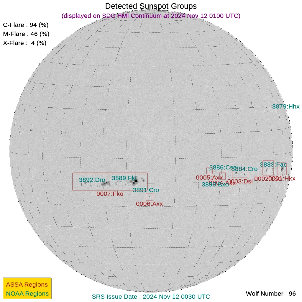 太陽フレアと黒点数(2024年11月12日更新)※中規模太陽フレア&CME到着予測あり