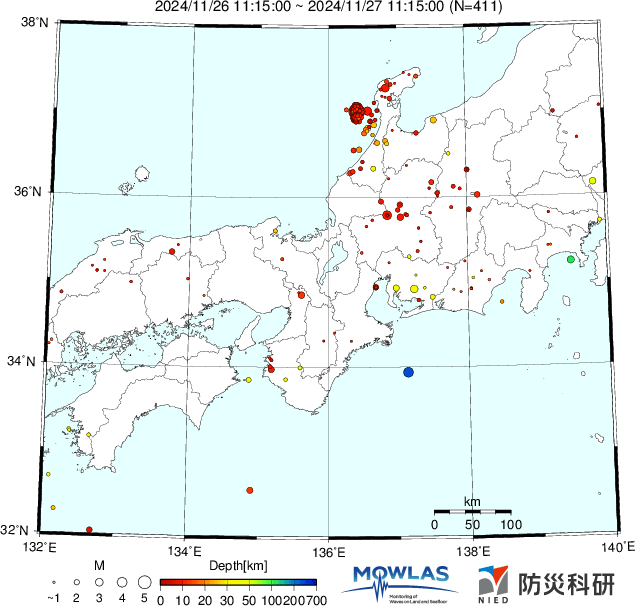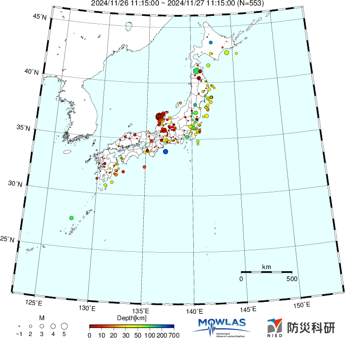 ●Hi-net日本地震分布と気象庁・・・hi-netの小笠原のデータは掲載日がずれて反映されるようです(翌々日に掲載)。掲載されないものもあるようなので気象庁の画像も付けます