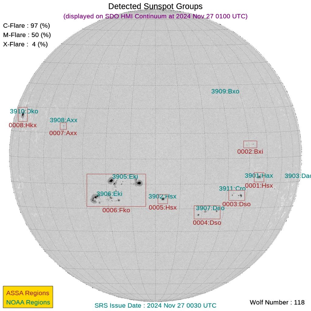 現時点で地球正面の黒点群は[3902, 3905, 3906, 3907]です。←黒点番号が振られていない活動領域でもフレアは発生しますので、あくまで目安として捉えてください。