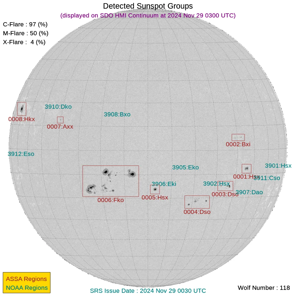 太陽フレアと黒点数(2024年11月29日更新)※CME到着予測あり