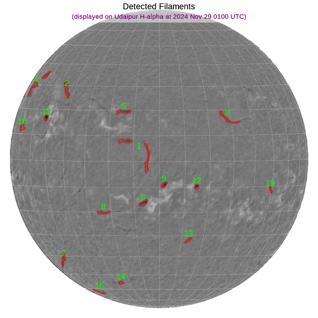 南半球中心付近に複数のフィラメント、西側、東端にもフィラメントがあります