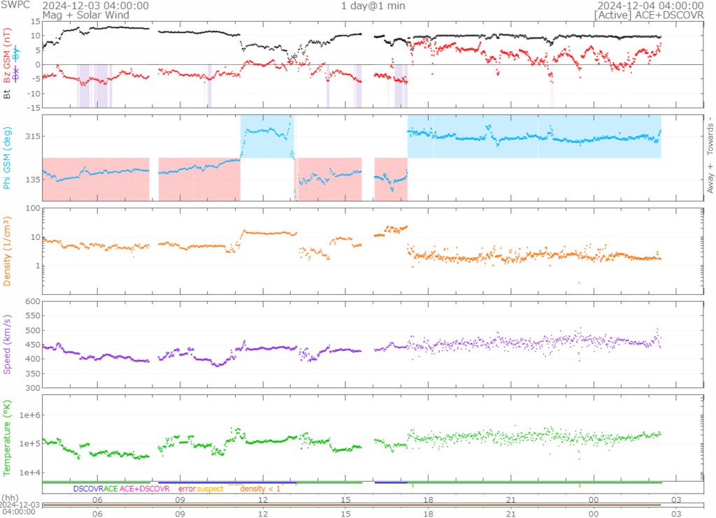一時380km/s前後まで下がりましたが、現在450km/s前後で推移しています。