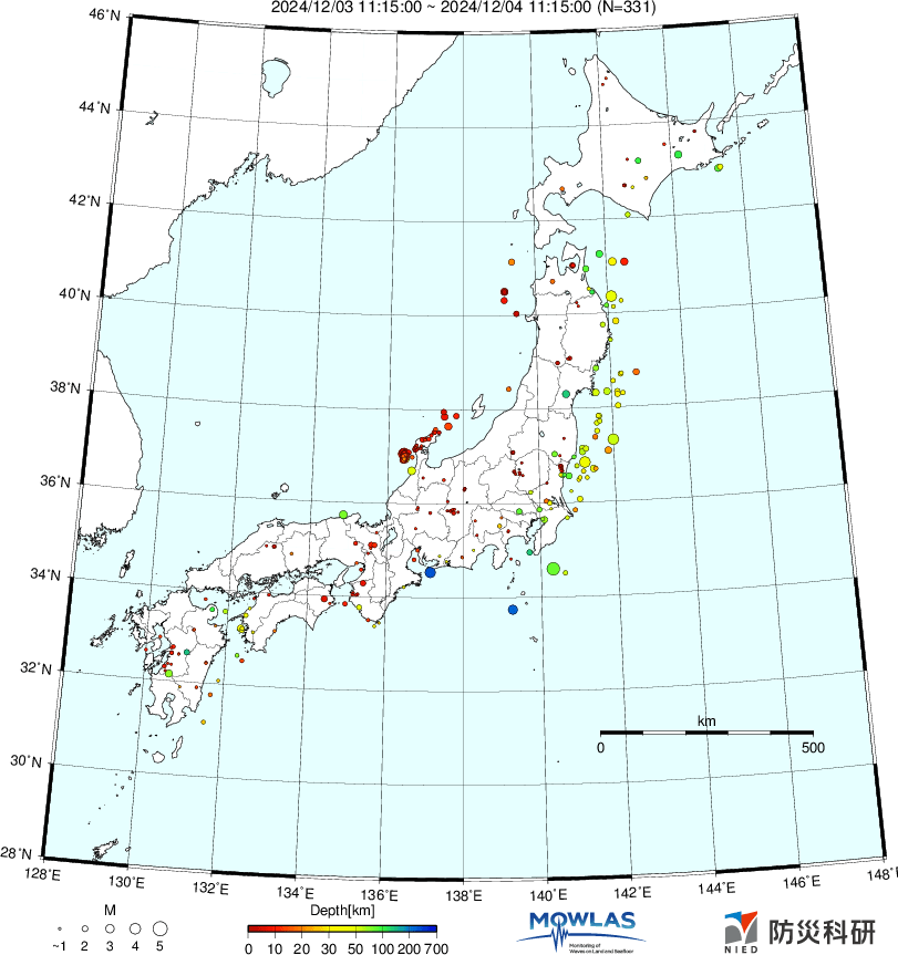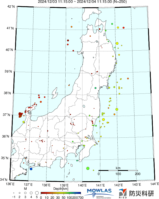 ●Hi-net日本地震分布と気象庁・・・hi-netの小笠原のデータは掲載日がずれて反映されるようです(翌々日に掲載)。掲載されないものもあるようなので気象庁の画像も付けます