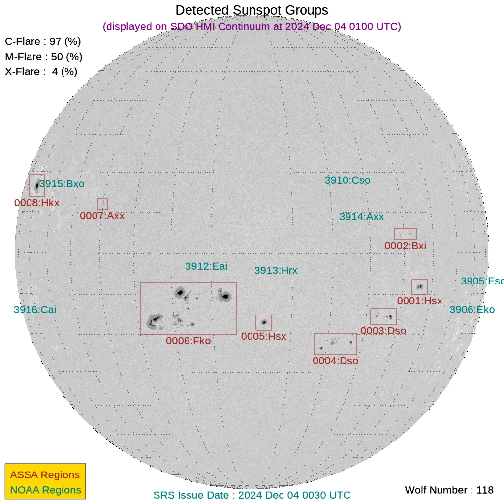 現時点で地球正面の黒点群は[3912, 3913]です。←黒点番号が振られていない活動領域でもフレアは発生しますので、あくまで目安として捉えてください。