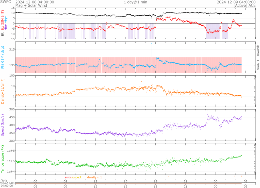 340km/s前後まで下がりましたが徐々に上がり、現在470km/s前後で推移しています。