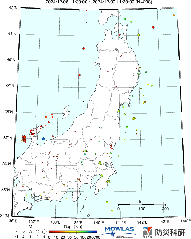 ●Hi-net日本地震分布と気象庁・・・hi-netの小笠原のデータは掲載日がずれて反映されるようです(翌々日に掲載)。掲載されないものもあるようなので気象庁の画像も付けます