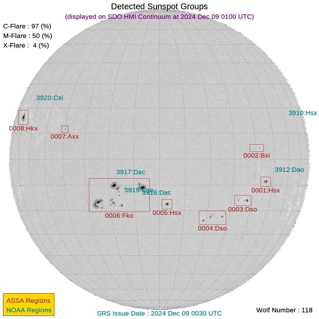 太陽フレアと黒点数(2024年12月09日更新)※大規模太陽フレア&CME到着予測あり
