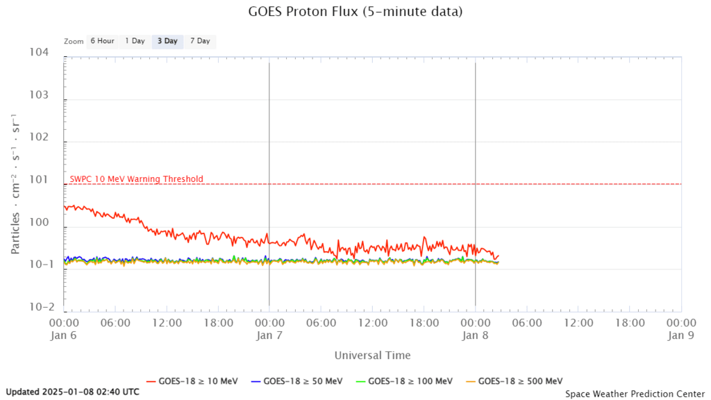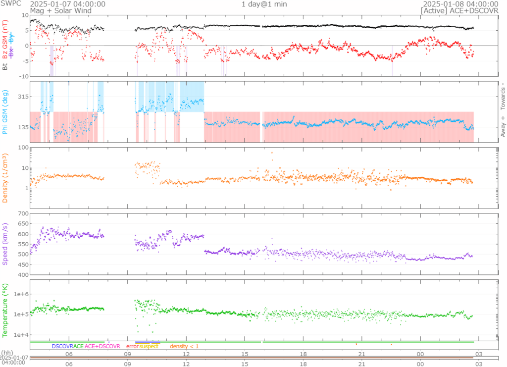 一時630km/s前後まで上がりましたが徐々に下がり、現在500km/s前後で推移しています