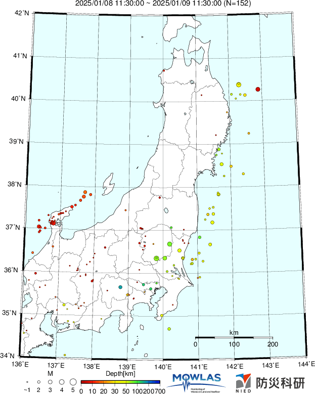 ●Hi-net日本地震分布と気象庁・・・hi-netの小笠原のデータは掲載日がずれて反映されるようです(翌々日に掲載)。掲載されないものもあるようなので気象庁の画像も付けます